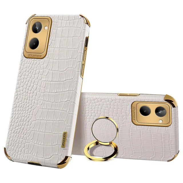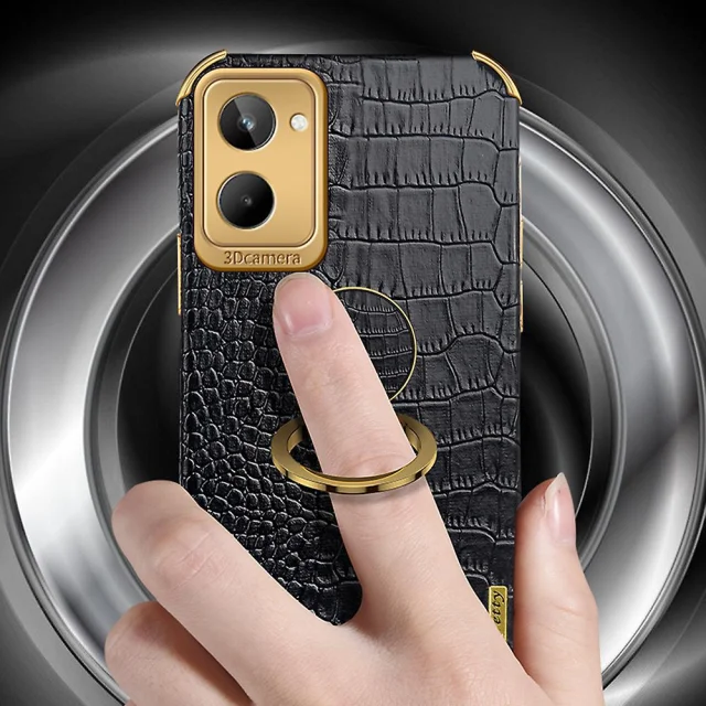 Za Realme 10 4G usnjeno ohišje TPU, prevlečeno s krokodiljo teksturo, galvaniziran ovitek za telefon s stojalom za prstan