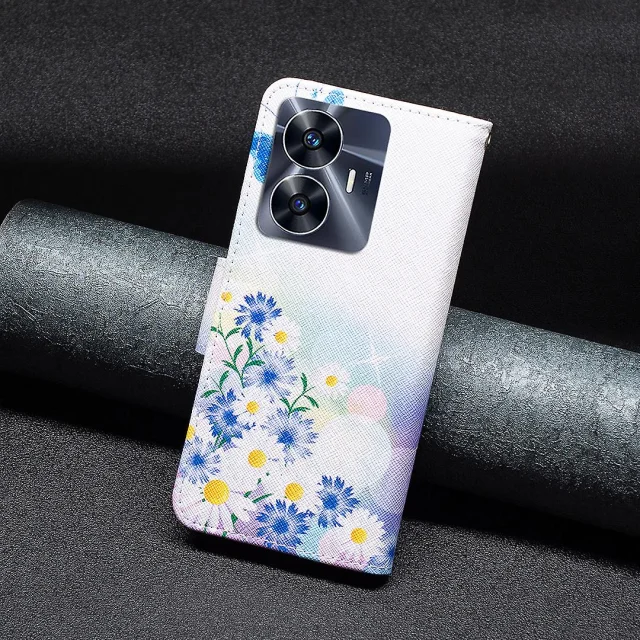 Za Realme C55 etui za telefon s tiskanjem vzorcev, popolna zaščita, lupina denarnice iz usnja PU s stojalom