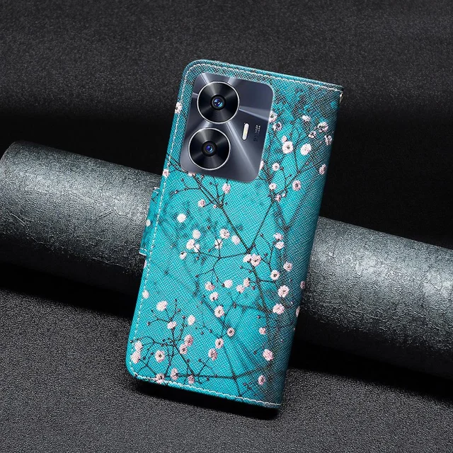Za Realme C55 etui za telefon s tiskanjem vzorcev, popolna zaščita, lupina denarnice iz usnja PU s stojalom