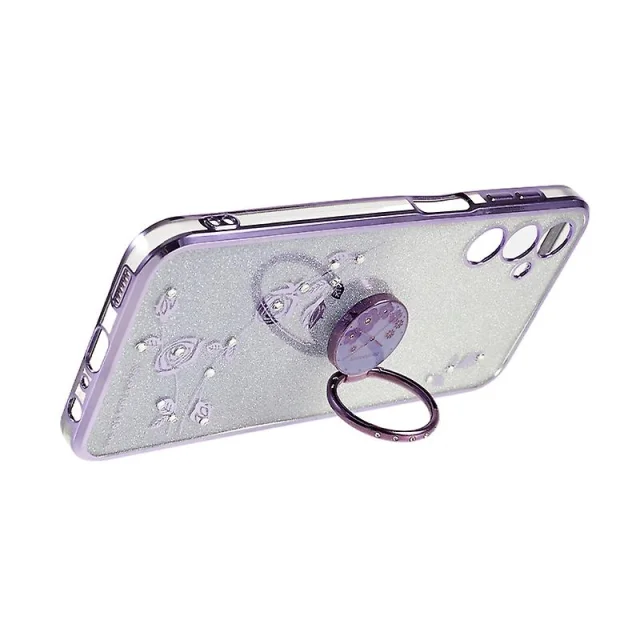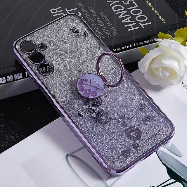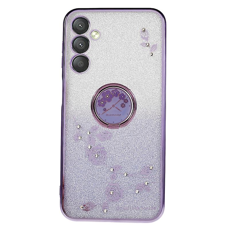 Za Samsung Galaxy A24 4G TPU ovitek s cvetličnim vzorcem z gradientnimi bleščicami, ovitek s stojalom za telefon