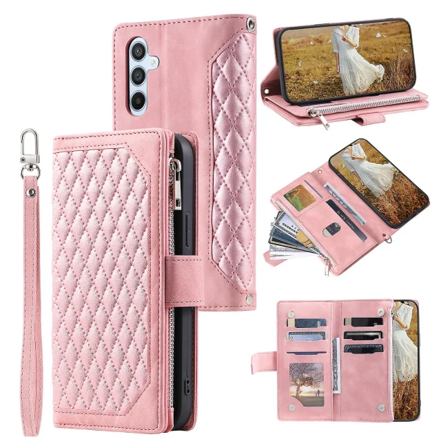 Za Samsung Galaxy A54 5G Protiprašna torbica za telefon iz PU usnja Rhombus Texture Ovitek za denarnico na zadrgo s trakom