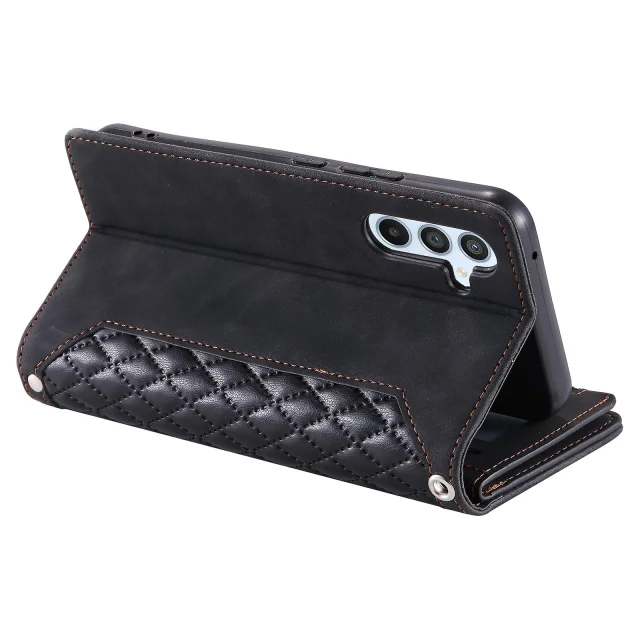 Za Samsung Galaxy A54 5G Protiprašna torbica za telefon iz PU usnja Rhombus Texture Ovitek za denarnico na zadrgo s trakom