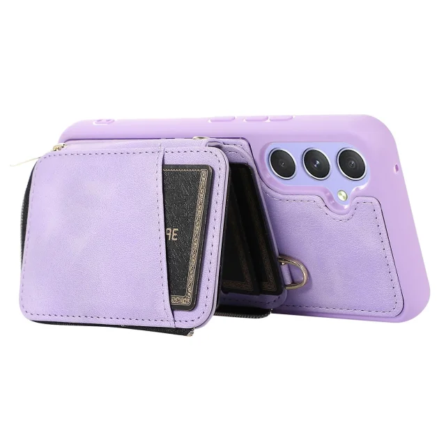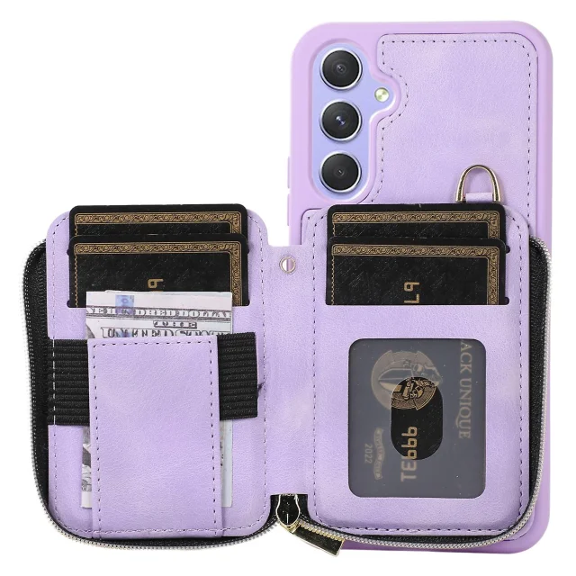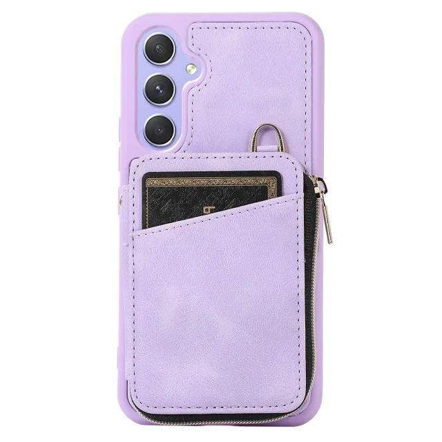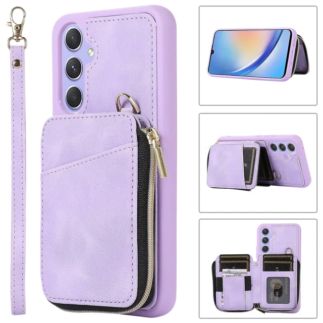Za Samsung Galaxy A54 5G torbica za telefon s stojalom na zadrgo, usnjena torbica za telefon TPU s trakovi