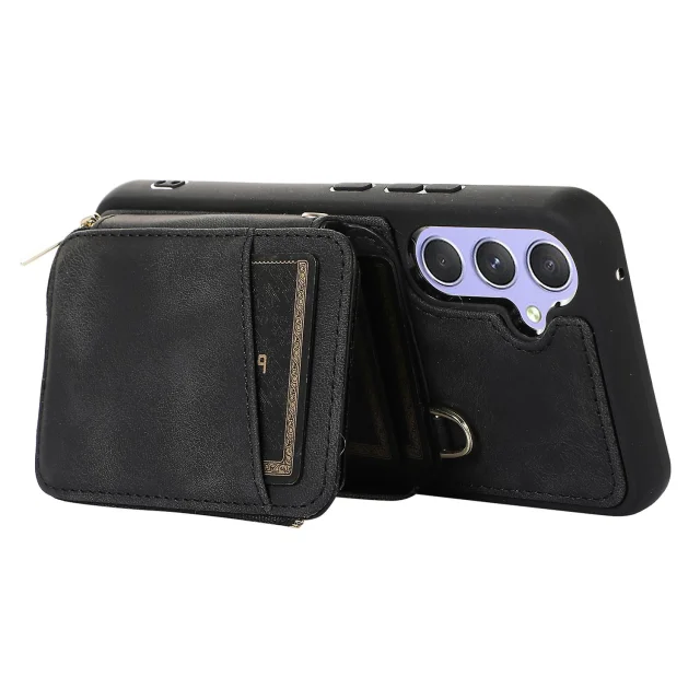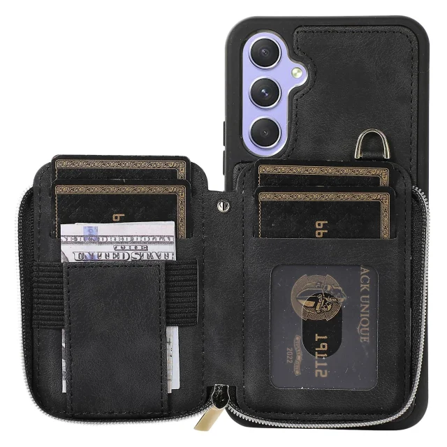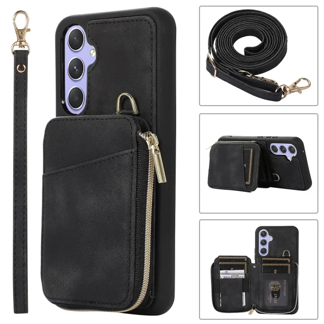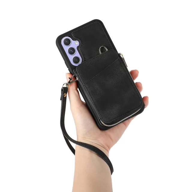 Za Samsung Galaxy A54 5G torbica za telefon s stojalom na zadrgo, usnjena torbica za telefon TPU s trakovi