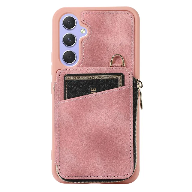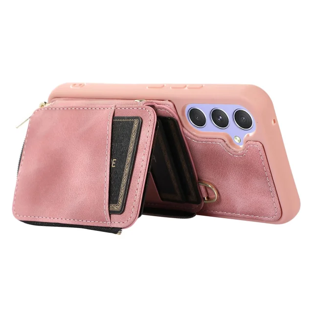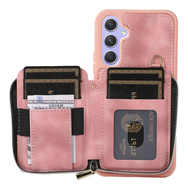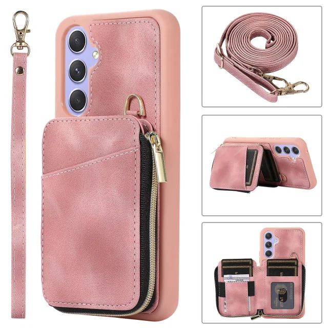 Za Samsung Galaxy A54 5G torbica za telefon s stojalom na zadrgo, usnjena torbica za telefon TPU s trakovi
