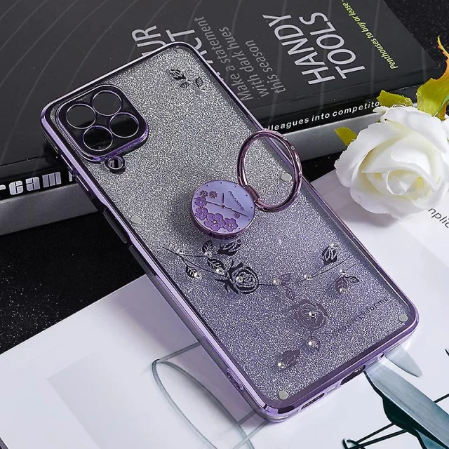 Za Samsung Galaxy M53 5G TPU ovitek z gradientom, bleščicami in okrasjem iz nosorogovih, cvetlični vzorec, ovitek za telefon