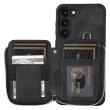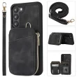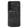 Za Samsung Galaxy S23+ Etui za telefon z držalom za kartico z zadrgo, z usnjem prevlečen TPU ovitek s stojalom in trakovi