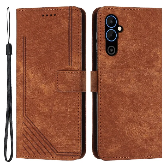 Za Tecno Pova 4 4G stojalo za denarnico, PU usnjena torbica Skin-touch Lines vtisnjen ovitek za telefon