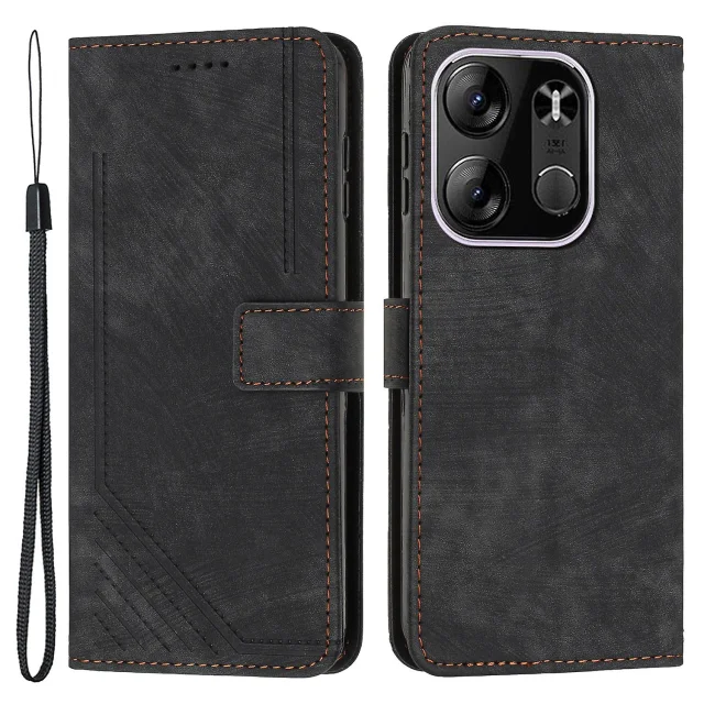 Za Tecno Spark Go 2023 4G/Pop 7 Pro 4G/Smart 7 4G X6515 usnjena torbica za telefon na dotik kože, črte denarnice, vtisnjen pokrov stojala