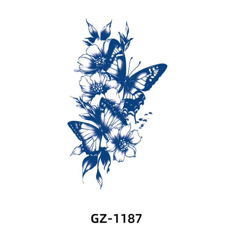 Začasna tetovaža z modrim cvetličnim vzorcem 4
