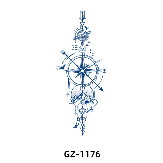 Začasna tetovaža z modrim cvetličnim vzorcem 8