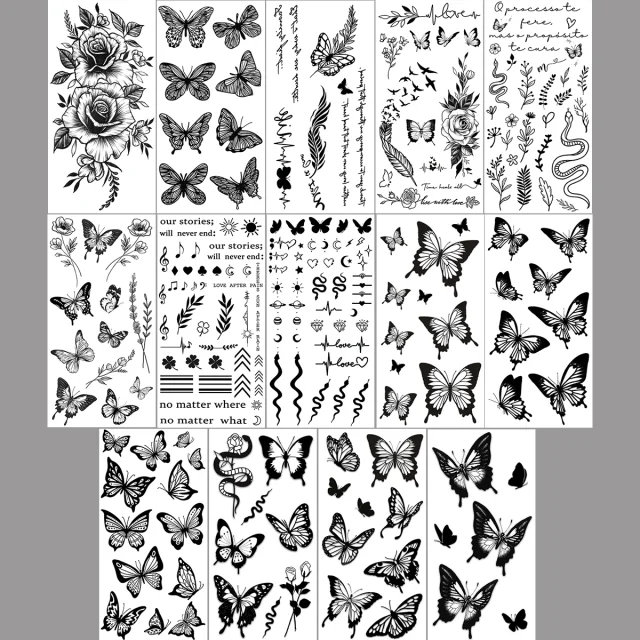 Začasne vodoodporne tetovaže, 14 kosov Metulj