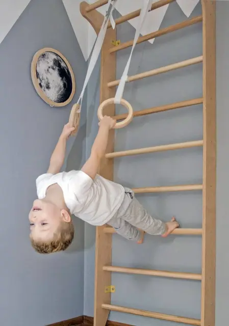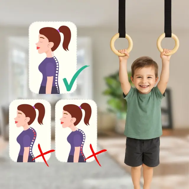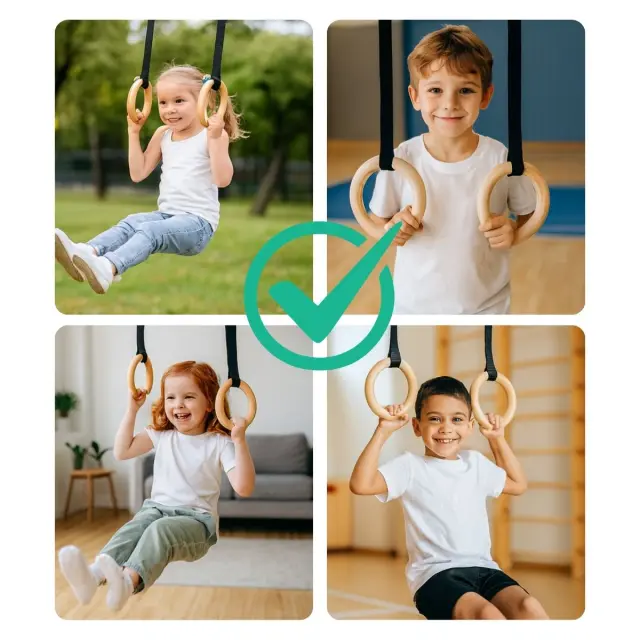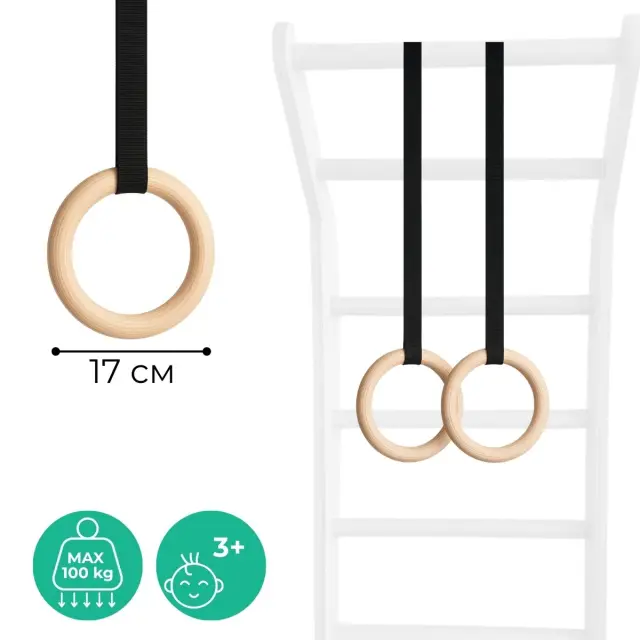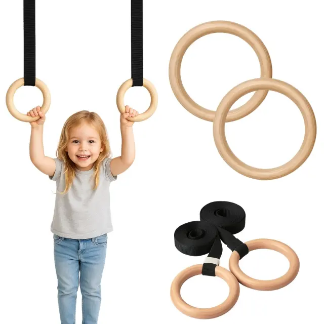 Začetni Leseni Gimnastični Obročki - Črn Trak