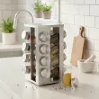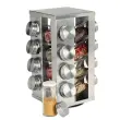 Stojalo za začimbe je izjemno praktično zaradi svoje vrtljive zasnove, ki omogoča hiter in enostaven dostop do vseh vaših najljubših začimb. Z enim samim gibom imate vedno dober pregled nad celotno zbirko, kar olajša kuhanje in prihrani čas. Stojalu je priloženih 16 steklenih kozarcev s prostornino 50 ml, opremljenih s pokrovi iz nerjavečega jekla, ki zagotavljajo dolgotrajno uporabo in sodoben videz. Za še večjo preglednost priporočamo, da kozarce označite z imeni posameznih začimb, kar dodatno izboljša organizacijo v kuhinji. Stojalo je izdelano iz kakovostnega kromiranega jekla, njegova kompaktna in vrtljiva zasnova pa se lepo prilega vsaki kuhinjski delovni površini. Steklenice lahko pomijete v pomivalnem stroju.