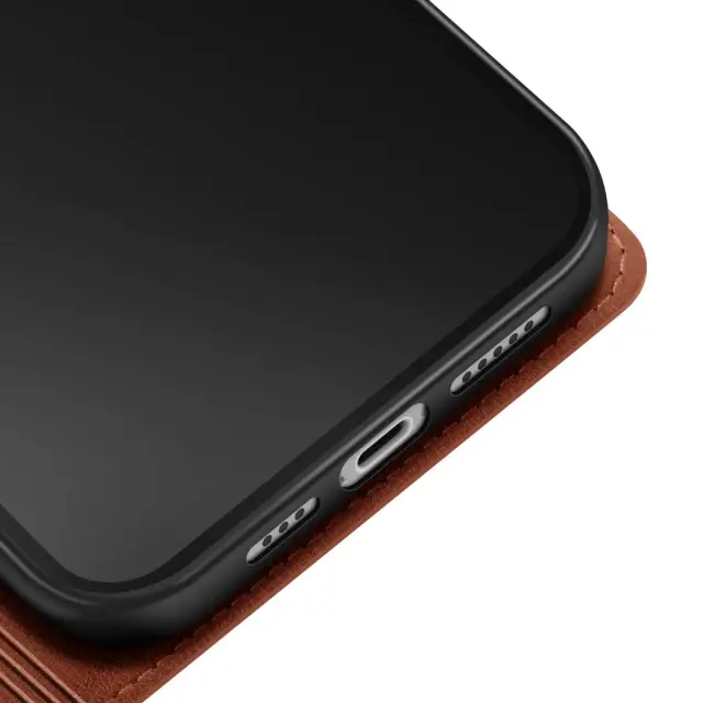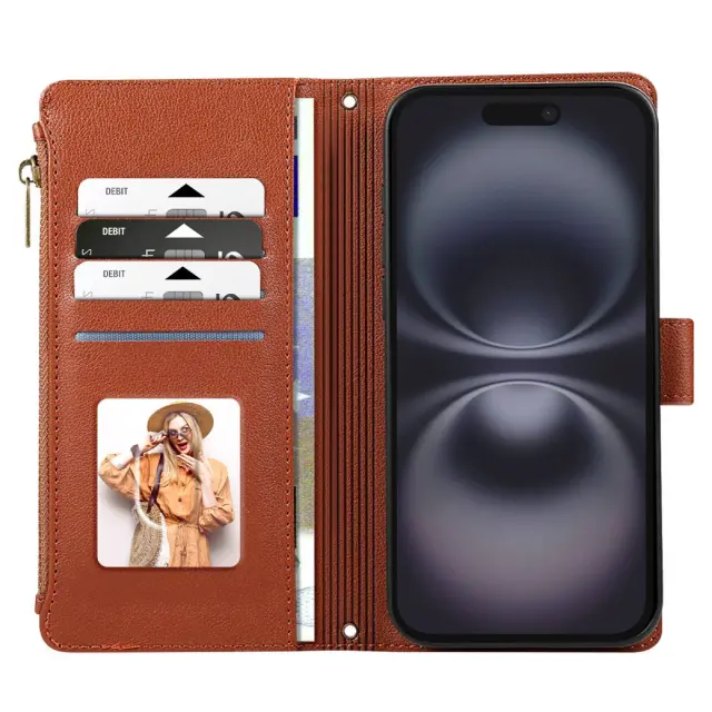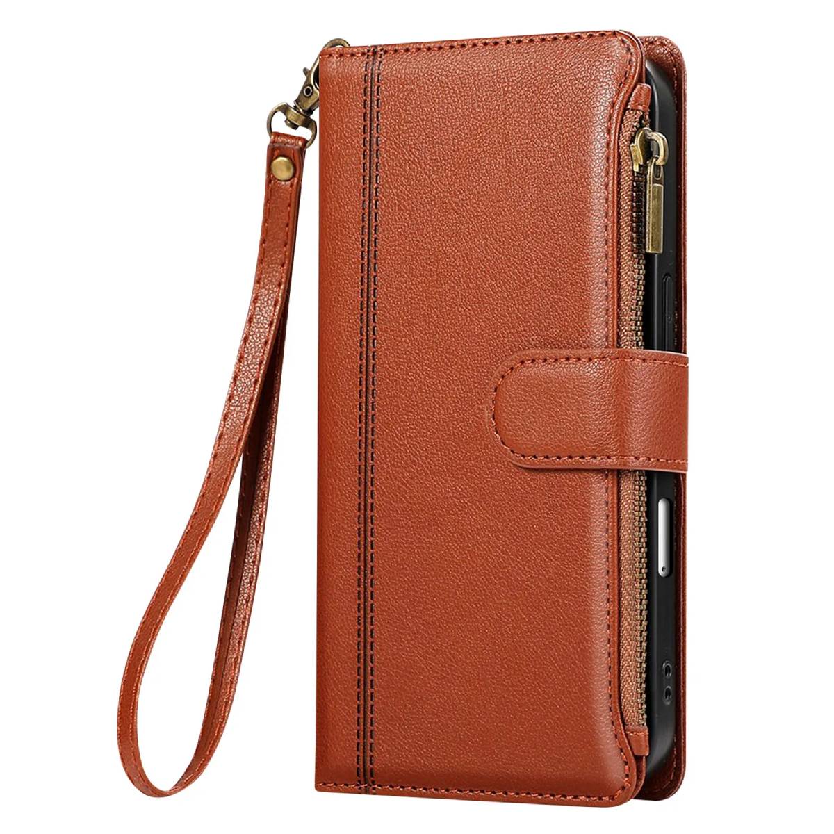 Zadeva denarnica za iPhone 16 z zadrgo z odstranljivim zapestnim trakom, Rjava