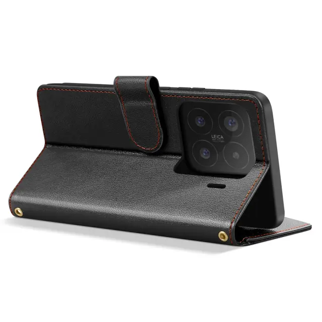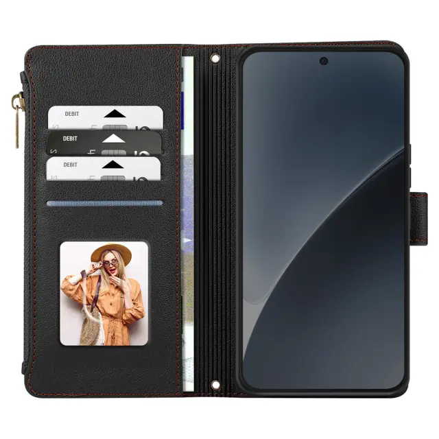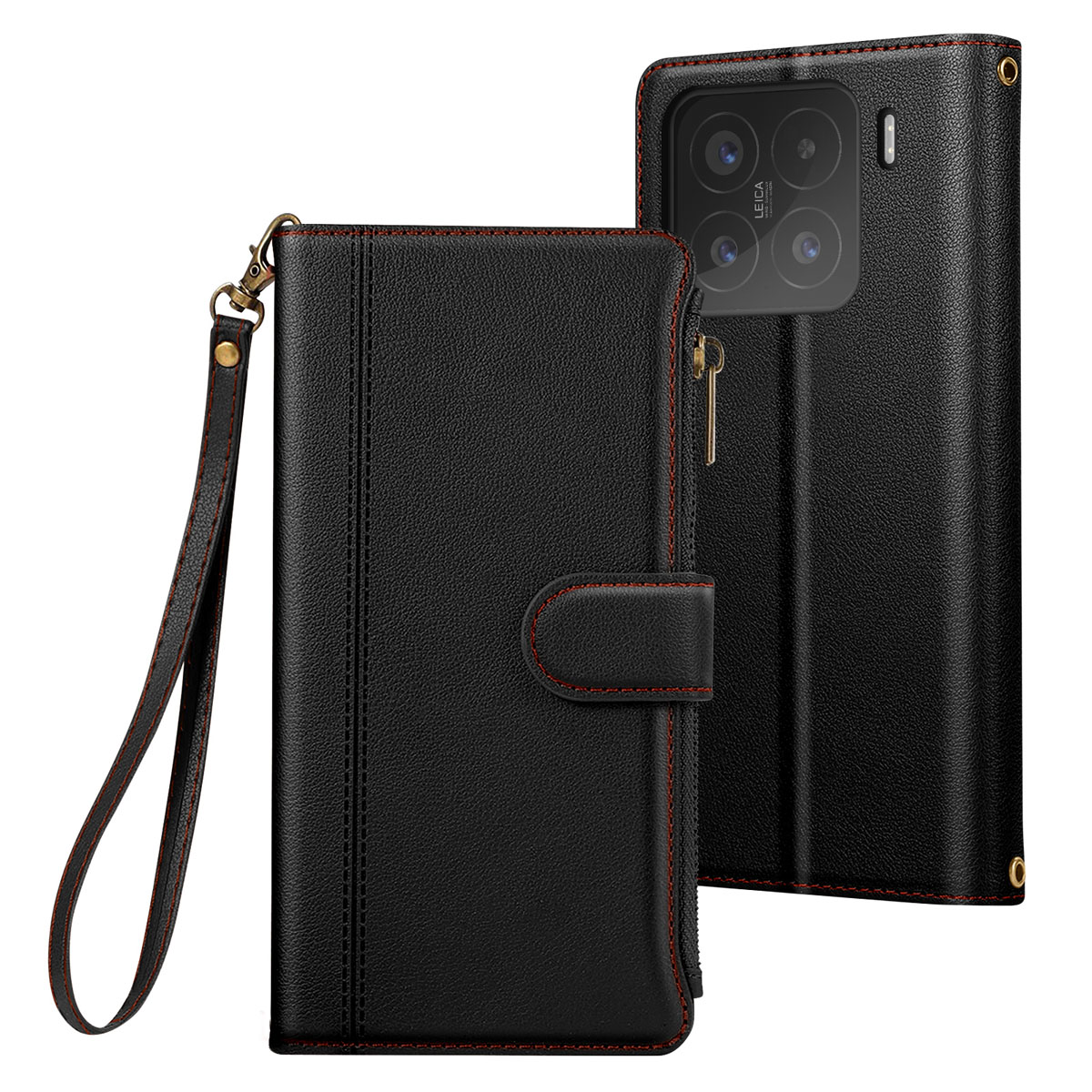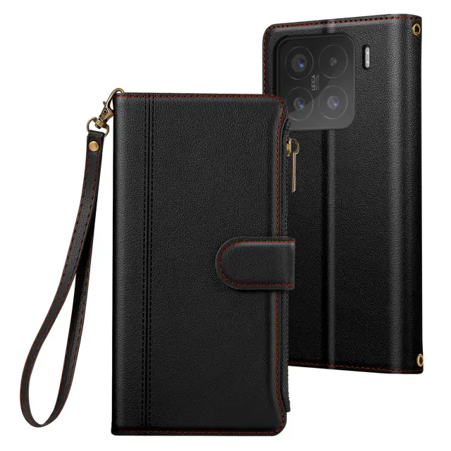 Zadeva Folio za Xiaomi 15 z zadrgo z odstranljivim ramenskim pasom, Črna