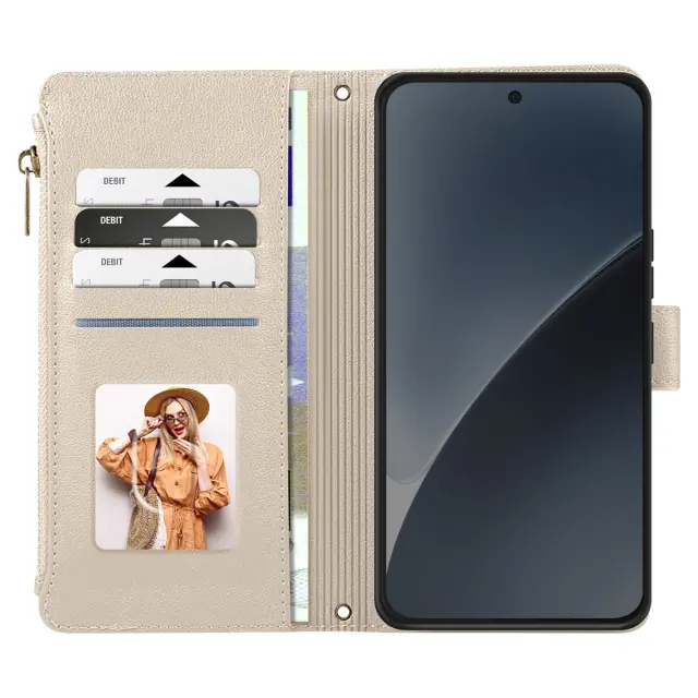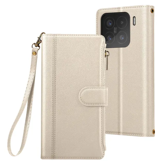 Zadeva Folio za Xiaomi 15 z zadrgo z odstranljivim ramenskim pasom, Bež