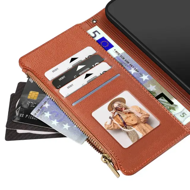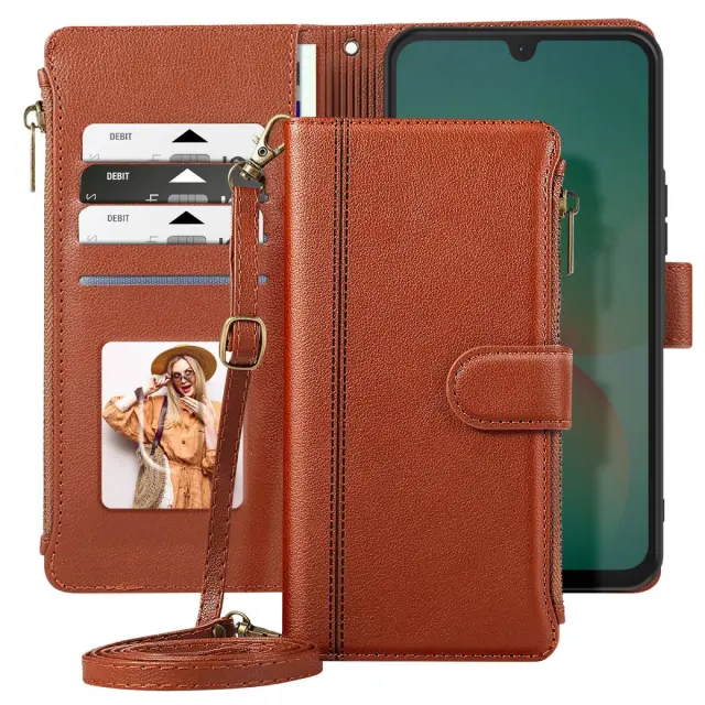 Kovček 3-v-1 s funkcijo denarnice, žepom z zadrgo in popolno zaščito. Vključen ramenski in ročni pas za varen in praktičen transport. Vgrajeno stojalo za ogled videoposnetkov ali opravljanje klicev v načinu prostoročnega upravljanja. Dobro integrirani predali za kartice, fotografije in bankovce za vsakodnevno uporabo.