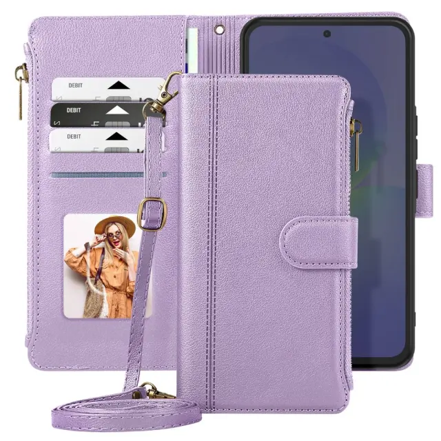 Zadeva za Galaxy A36 z zadrgo in snemljivim ramenskim pasom, Lavanda