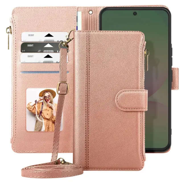 Zadeva za Galaxy A56 z zadrgo in odstranljivim ramenskim pasom, Roza