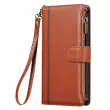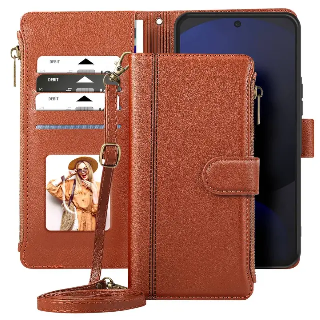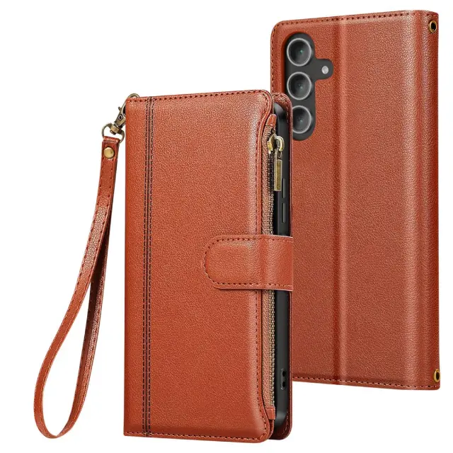 Zadeva za Galaxy S24 FE z zadrgo in odstranljivim ramenskim pasom, Rjava