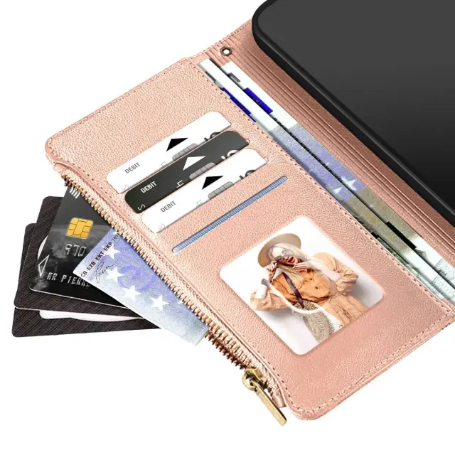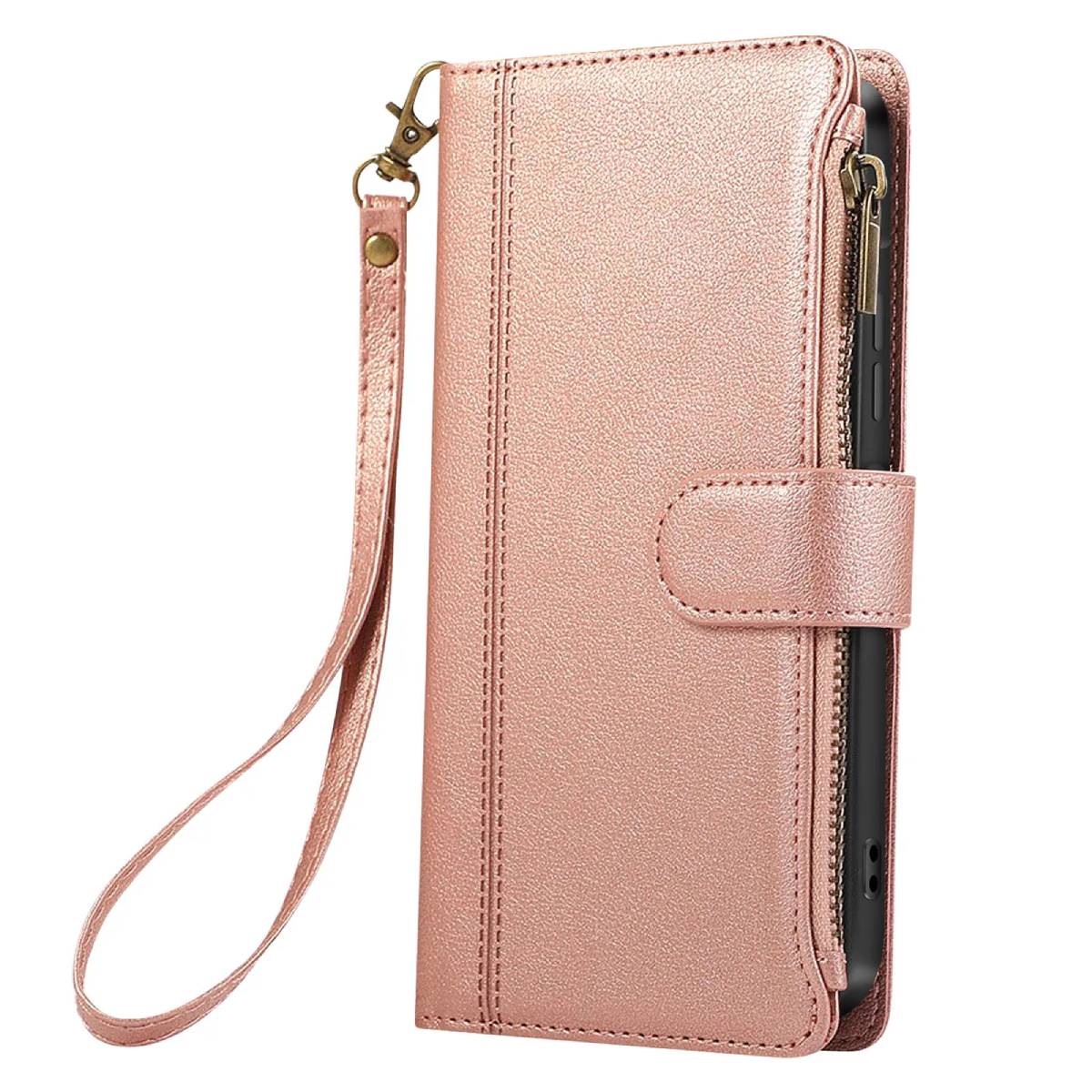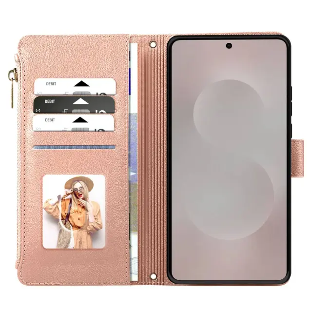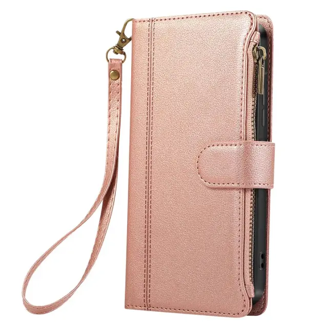 Zadeva za Galaxy S25 Edge z zadrgo in snemljivim paščkom za zapestje, Roza