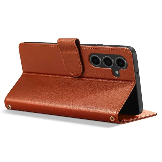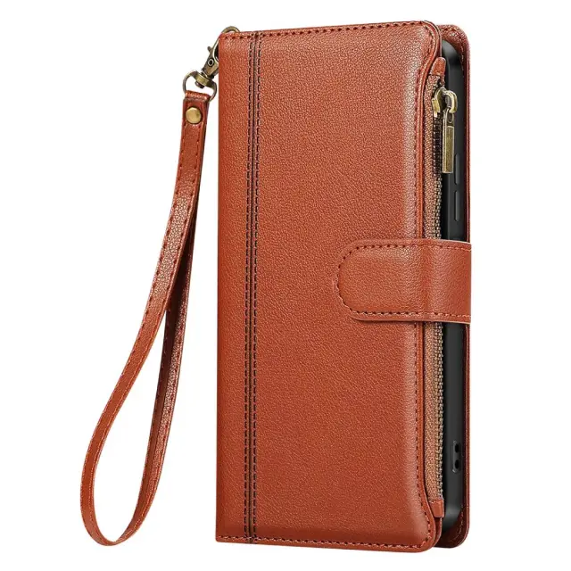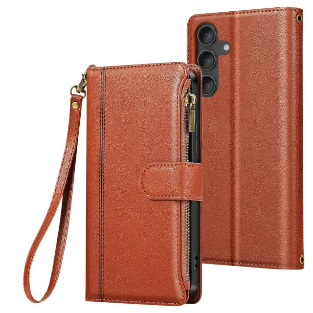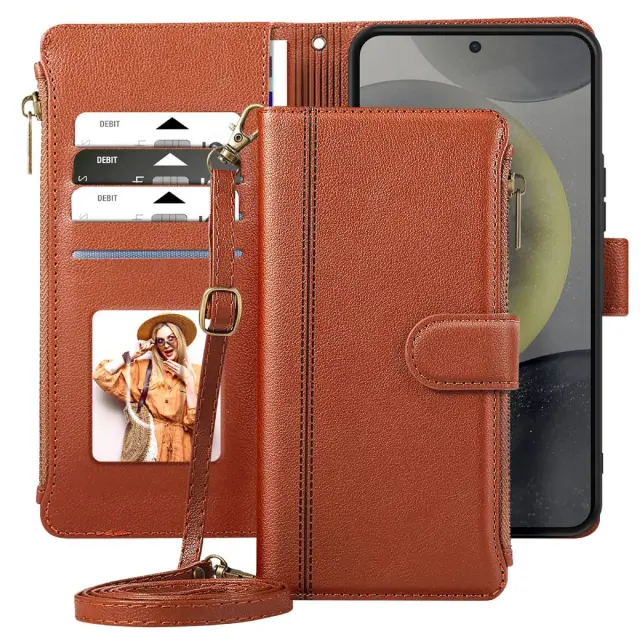 Zadeva za Galaxy S25 / S24 z zadrgo in odstranljivim ramenskim pasom, Rjava