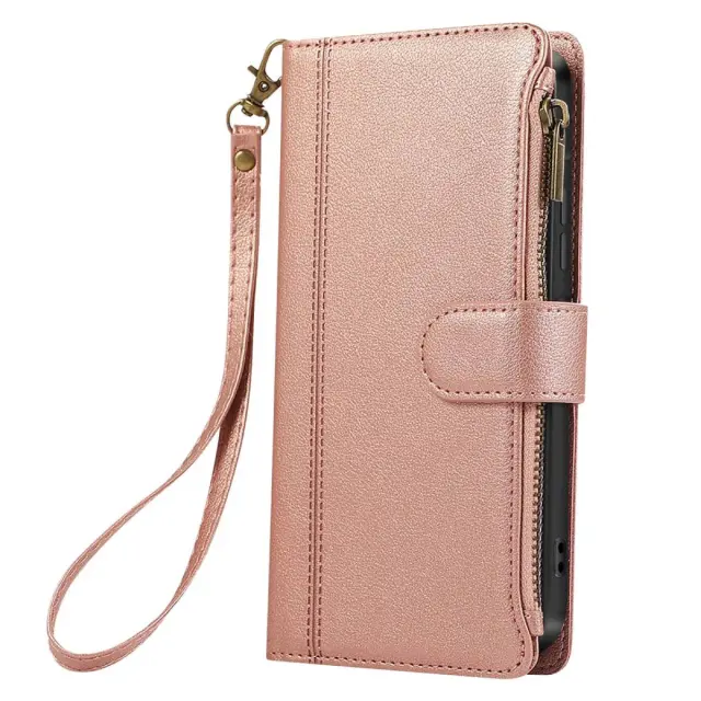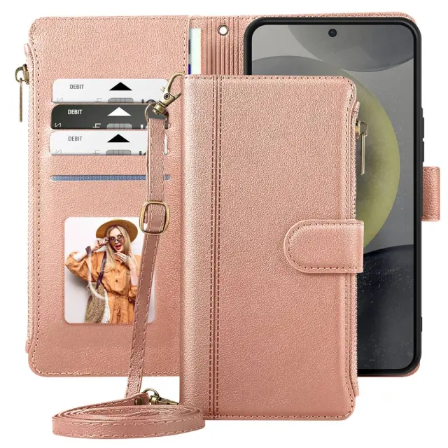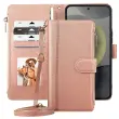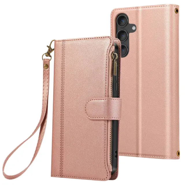 Zadeva za Galaxy S25 / S24 z zadrgo in snemljivim ramenskim pasom, Roza