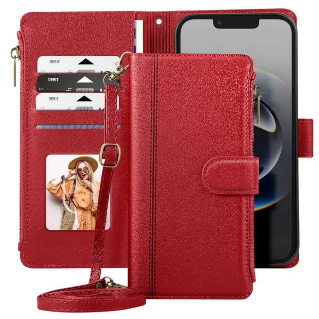 Zadeva za iPhone 16e z zadrgo in snemljivim ramenskim pasom, Rdeča