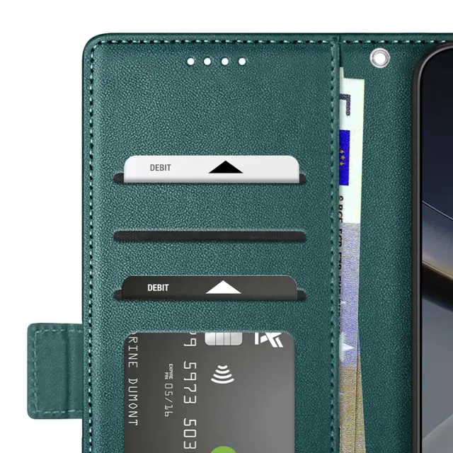 Zadeva za Poco F7 z magnetom, stojalom in prostorom za kartice, Zelena