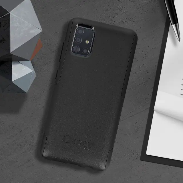 Zaščitni ovitek za vaš Samsung Galaxy A71, OtterBox Commuter Series. Preizkušen in certificiran proti udarcem zahvaljujoč hibridnemu premazu: polikarbonatna silikonska notranjost. Vrhunska finost za popolno prileganje oblikam vašega pametnega telefona. Dvignjeni robovi zaslona in kamere za boljšo zaščito.