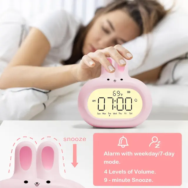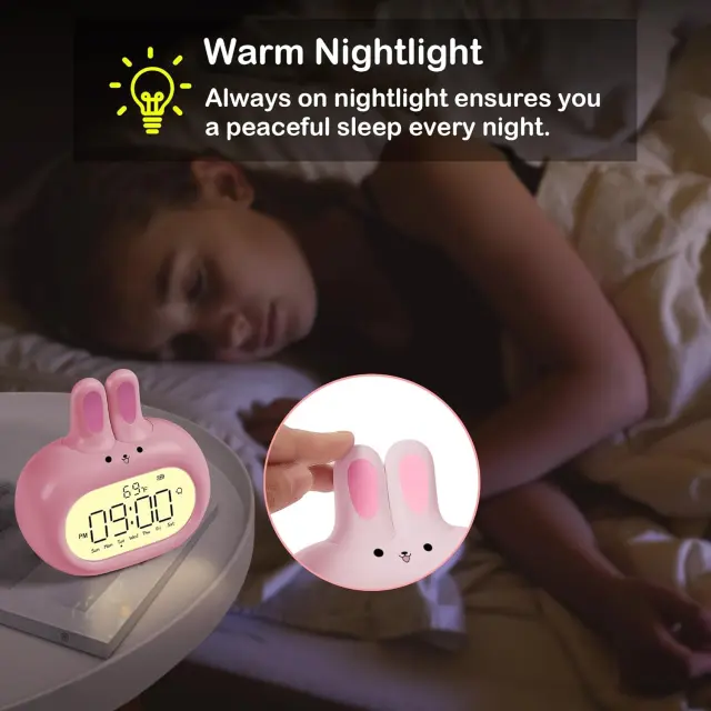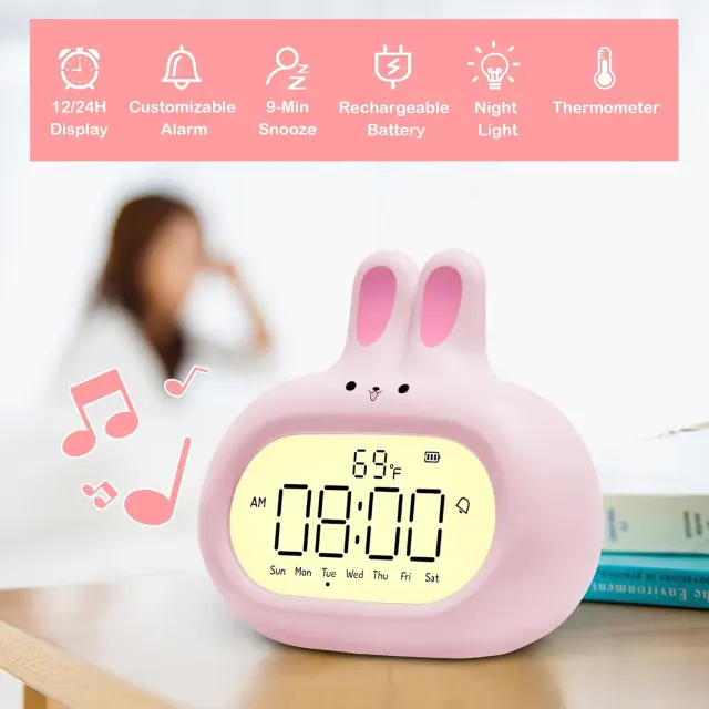 【Enostaven dizajn】Velik digitalni prikaz časa, 12-urni/24-urni način. Prikaz dneva v tednu in temperature (℉ / ℃) vam pomaga razumeti dan, takoj ko se zbudite.【Topla nočna lučka】Dve plasti nastavljive tople nočne luči vam lahko zagotovita nočno osvetlitev, ne da bi povzročali preveč motenj. Samo kliknite za vklop, vedno vklopljen.[Prilagodljiva budilka] Ena budilka, delovni dan/7-dnevni način. Izbirate lahko med 4 stopnjami glasnosti alarma. Dremež, da boste lahko spali še 9 minut. Dremež do 3-krat, da nikoli ne zamudite načrtovanega časa bujenja.【Idealno darilo】Ljubazen dizajn, baterija za polnjenje, popolna velikost, brezžično, primerno za vsakogar.