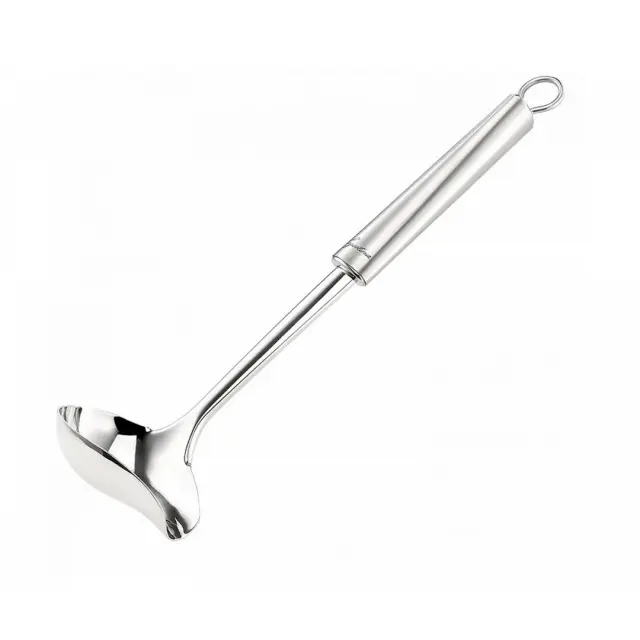 Za elegantno ZAJEMALKO LAGOSTINA z dolžino 28 cm je značilna edinstvena oblika z izlivom, ki zagotavlja natančno vlivanje omak ali juh naravnost v posodo ali krožnik. Izdelana je iz najkakovostnejšega nerjavečega jekla, z odprtino na držalu za priročno in enostavno obešanje.