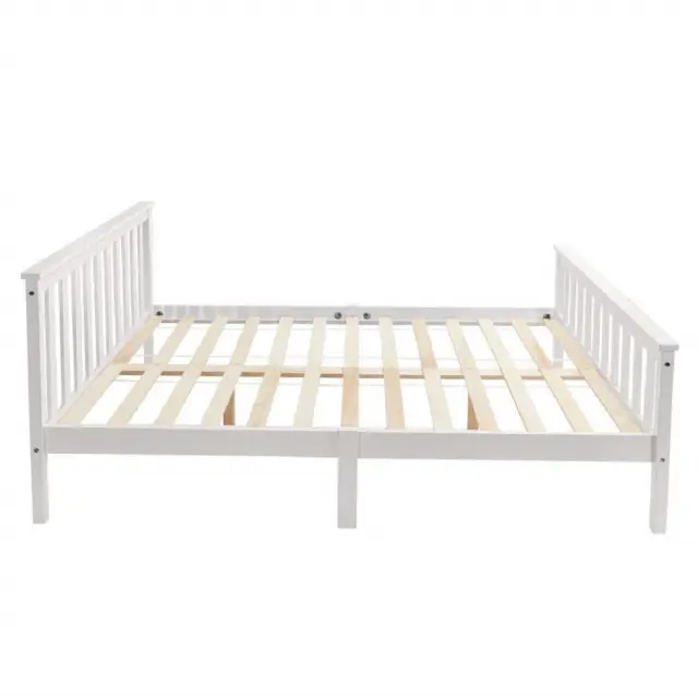 Zakonska postelja iz masivnega borovega lesa (140x200 cm) z letvenim okvirjem - bela