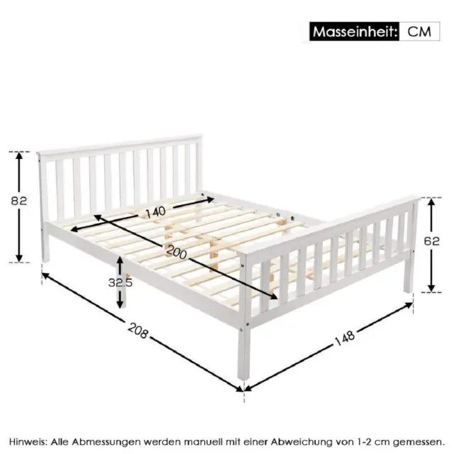 Posteljni okvir iz borovine/MDF plošče 140 x 200 cm. Nosilnost 150 kg. Vključuje letvičasti okvir.