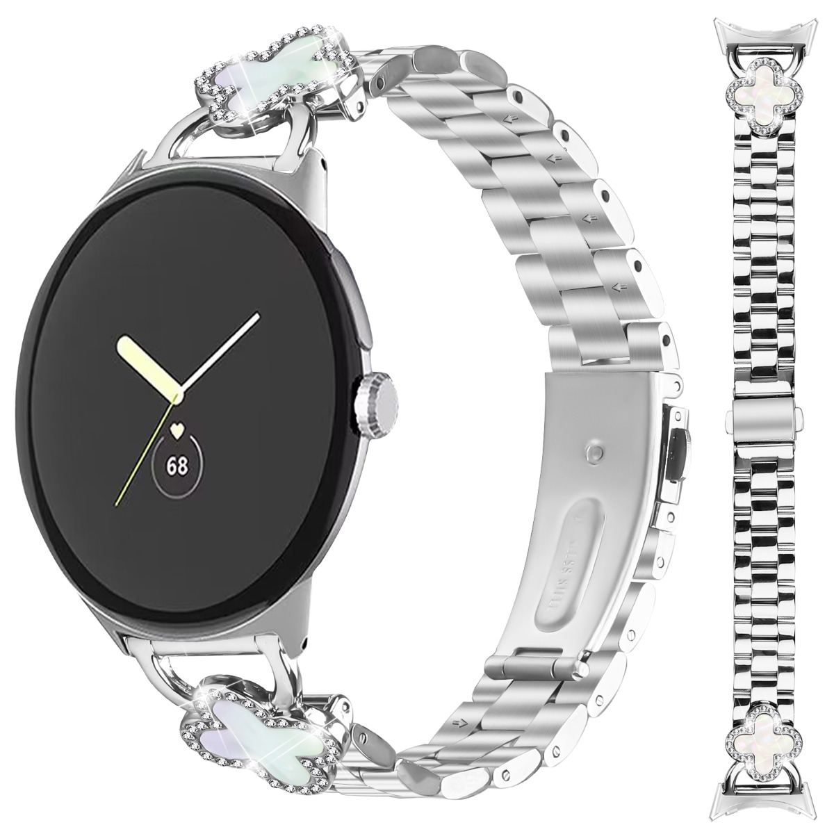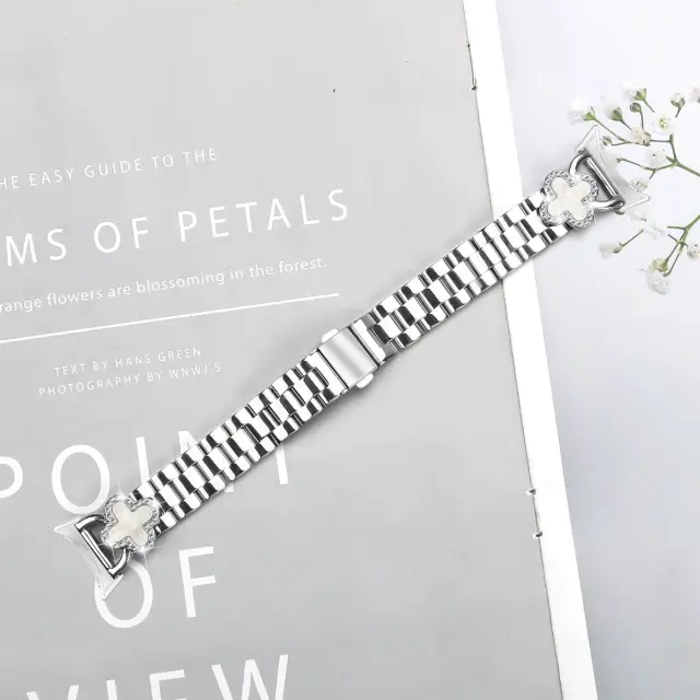 Eleganten dizajn s štiriperesno deteljico: Ta pašček za uro ima eleganten dizajn s štiriperesno deteljico z bleščečimi okrasnimi kamenčki, ki vašemu pametnemu uri Google Pixel doda pridih prefinjenosti in čarobnosti. Edinstveni poudarki štiriperesne deteljice dvignejo celotno estetiko, zaradi česar je eleganten dodatek, primeren za različne priložnosti, od priložnostnih izletov do formalnih dogodkov. Izrazite svojo individualnost in izboljšajte svoj osebni slog s tem privlačnim pasom za uro.