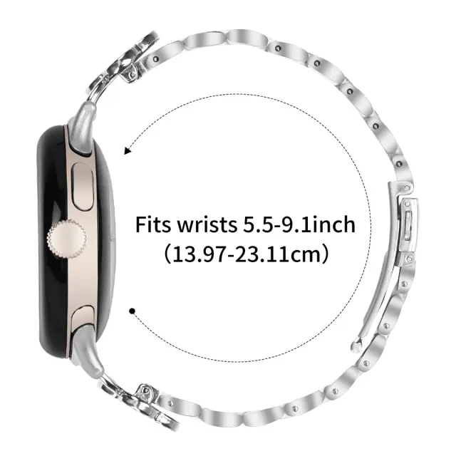 Nastavljiva zasnova s trojno povezavo: Zasnova s trojno povezavo zagotavlja varno in udobno prileganje različnim velikostim zapestja. Ta pas za uro Google Pixel je enostavno nastavljiv z odstranljivimi členi, kar vam omogoča, da prilagodite dolžino glede na vaše želje. Trdna zaponka zagotavlja, da vaša ura ostane varno pritrjena na vaše zapestje, kar zagotavlja brezskrbnost, medtem ko opravljate svoje vsakodnevne aktivnosti ali se ukvarjate s telesno vadbo, zaradi česar je praktična in elegantna zamenjava za vaš originalni pas.
