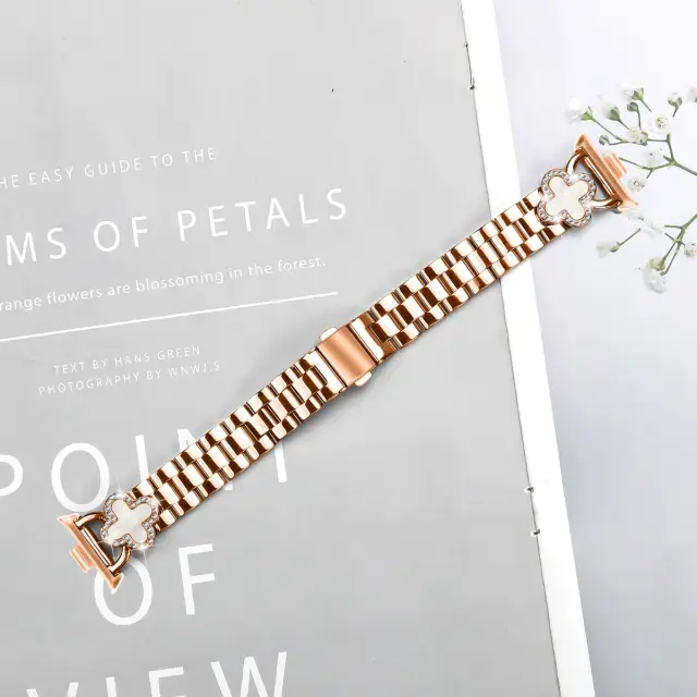 Eleganten dizajn s štiriperesno deteljico: Povzdignite svojo pametno uro s tem izvrstno oblikovanim paščkom iz nerjavečega jekla s temo deteljice. Pašček ima nežne obeske deteljice, okrašene s penečimi poudarki, ki vaši nosljivi napravi dodajo pridih prefinjenosti in ženstvenosti. Njegova edinstvena zasnova ga loči od standardnih paščkov za ure, zaradi česar je eleganten dodatek, združljiv s Xiaomi 8 Pro, Xiaomi 9 Pro, Redmi Watch 4 in Redmi Watch 5, ki izboljša vaš osebni slog in daje izjavo. Ne glede na to, ali se udeležujete formalnega dogodka ali se ukvarjate s svojo dnevno rutino, bo ta pas dodal pridih elegance vsaki obleki.