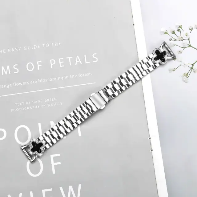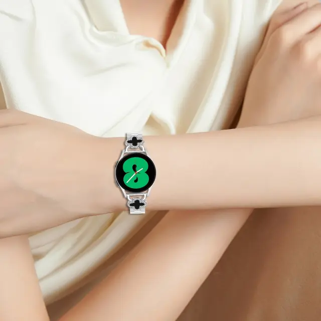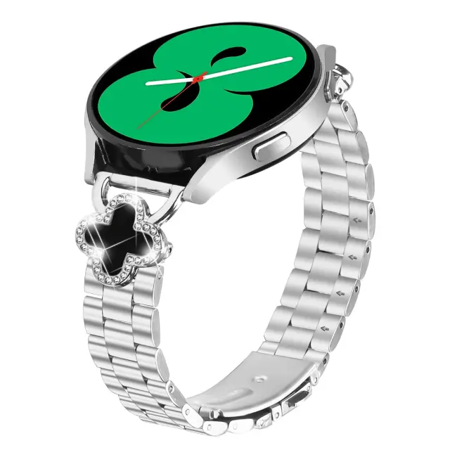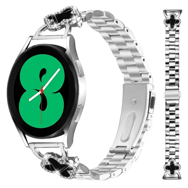 Eleganten dizajn deteljice: Ta pašček za uro iz nerjavečega jekla ima edinstven dizajn deteljice, ki vašemu Samsung Galaxy Watch doda pridih elegance in prefinjenosti. Zapletene podrobnosti in polirana obdelava ga naredijo stilski dodatek za vsako priložnost. Popoln za izboljšanje vašega videza in izražanje sebe. Ta pašček za uro, združljiv z napravami Samsung, ni le funkcionalen, temveč tudi čudovit kos nakita za vaše zapestje. Izstopajte iz množice s svojimi edinstvenimi in privlačnimi okraski deteljice.
