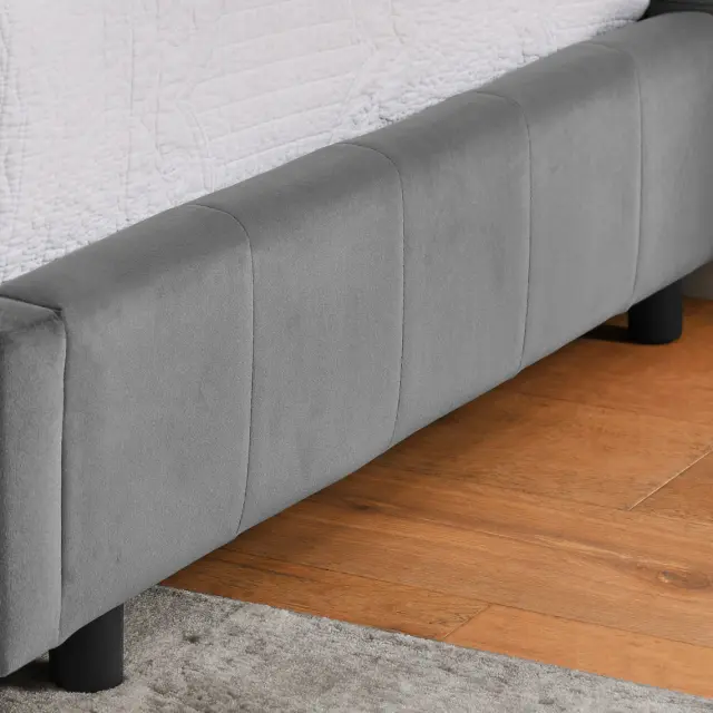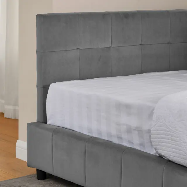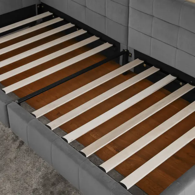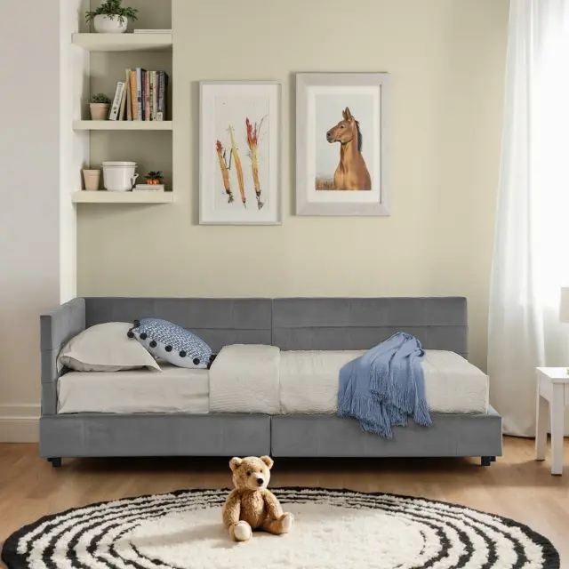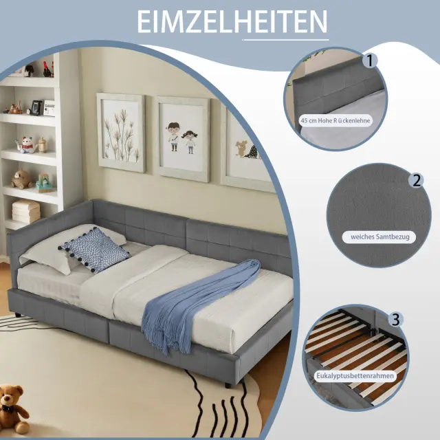 Žametna enojna postelja 90x200cm, temno siva, otroška postelja z visokim naslonjalom