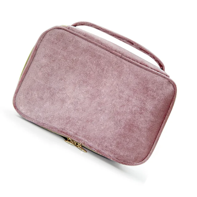 Žametna torbica za shranjevanje čopičev za ličenje - organizator potovalne kozmetike Pink