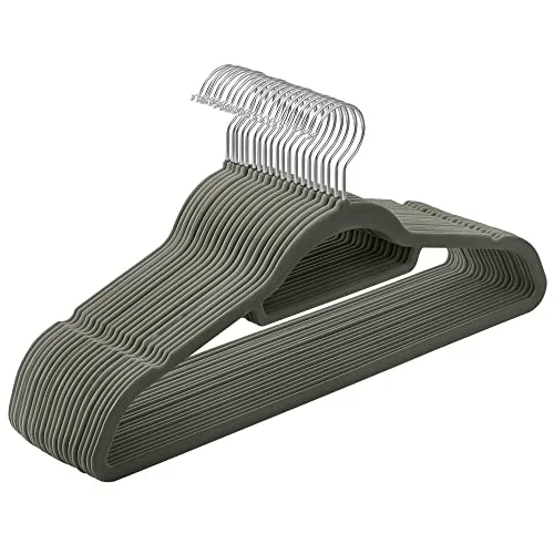 Žametni obešalniki, komplet 20 obešalnikov za plašče, nedrseči, z vrvico in 360° vrtljivim kavljem, prihranek prostora, debelina 0,6 cm, dolžina 43,5