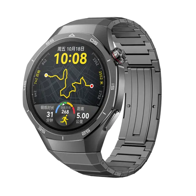 Eleganten in športen dizajn: črna zapestnica iz titana daje vaši uri Huawei Watch GT 5 Pro 46 mm eleganten in športen videz. Popoln je za vse priložnosti, od pisarne do telovadnice.