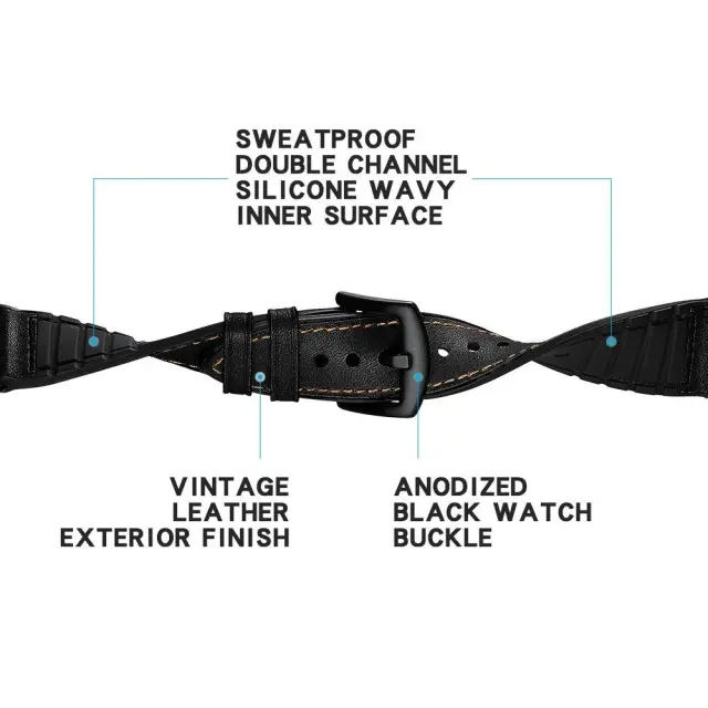 Eleganten in športen: lepa nadomestna zapestnica iz usnja s praktično spodnjo stranjo iz silikona, odpornega na znoj in vodo. Pašček za uro ima elegantno zaponko iz ekstra vodoodpornega anodiziranega nerjavečega jekla.