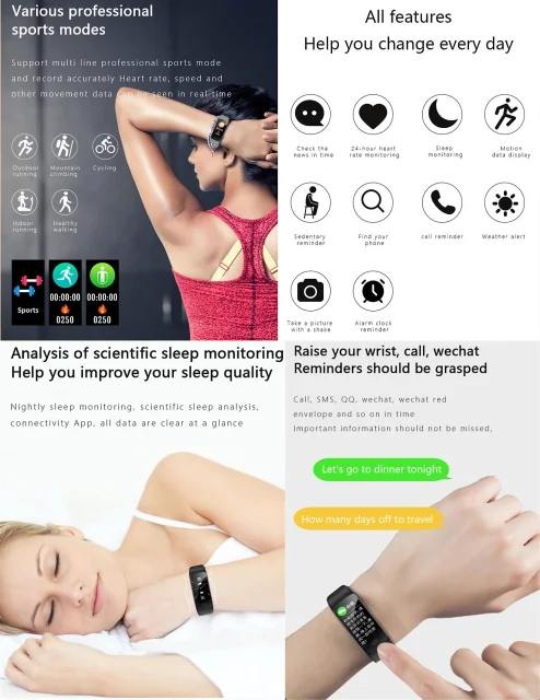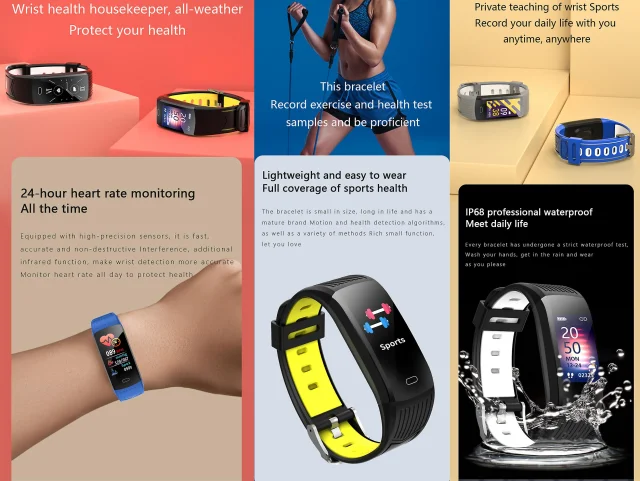 Zapestnice Pametna ura z zaslonom na dotik, nadzor srčnega utripa Ip67 Vodotesna fitnes steza, zapestnica pametne ure