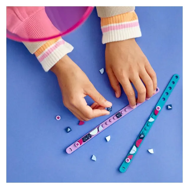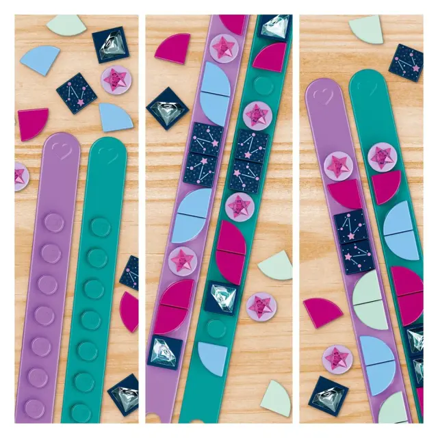 Oblikuj svoj čarobni nakit, ki ga navdihujejo zvezde, z zapestnicami s svetlobo zvezd! Razpri ozki zapestnici za eno vrsto ploščic in nanju pritrdi ploščice. Dodaj spreminjave zvezdne ploščice in ploščice z zvezdnimi zemljevidi, tako da boš ustvarjalno izrazila svoj stil, nato pa si zapestnici pripni na zapestje in svetu pokaži svojo edinstveno plat! Pripravljena na spremembo? Zapestnici okrasi drugače, da boš z njima izrazila svoje razpoloženji, in ju zamenjaj ali deli s prijateljicami! #dotyourworld #ustvaripikastsvet