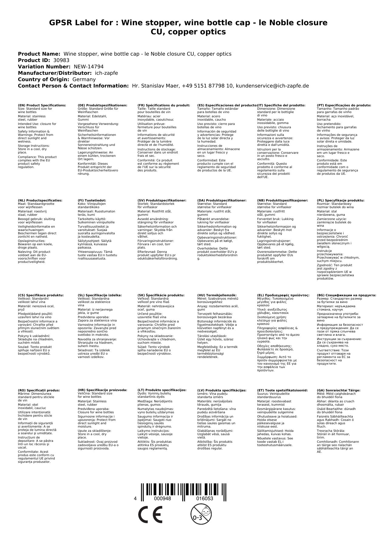 Podatki o proizvajalcu vključujejo informacije (naziv, naslov, državo in elektronski naslov) povezane s proizvajalcem izdelka.