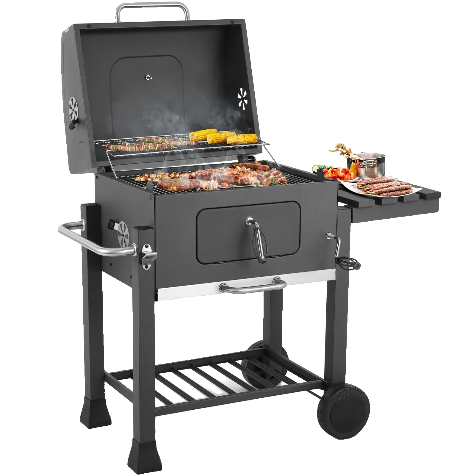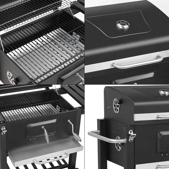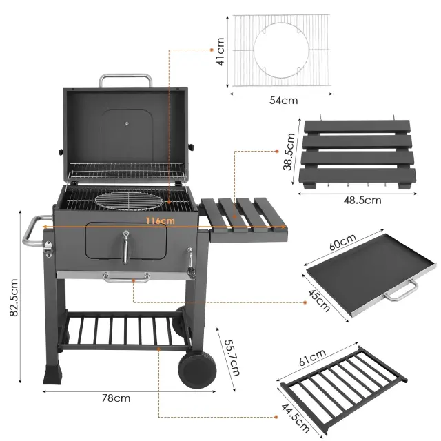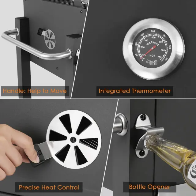 Praktična zasnova: Z velikimi kolesi za enostavno prevoz, je ta žar zasnovan za zunanje piknike, žarjenje na dvorišču in druženja na terasi, kar ga dela praktično izbiro za vsakega ljubitelja zunanjega kuhanja.
