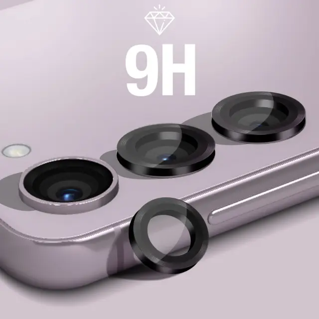 Zašcita fotoaparata Samsung Galaxy S23 in S23 Plus v ultra-prosojnem kaljenem steklu 9H - crn obris