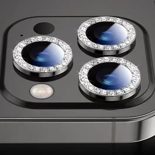 Ti elegantni pokrovi za leče so izdelani iz aluminijeve zlitine in kaljenega stekla ter okrašeni z bleščečimi kamenčki. Pokrov fotoaparata ščiti objektiv pred praskami, umazanijo in drugimi poškodbami, ne da bi to vplivalo na kakovost slike ali fotografiranje z bliskavico. Dostavljen kot celoten komplet 3 za vse kamere na vašem iPhone 14 Pro / 14 Pro Max.